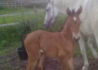 Vi kom hem väldigt sent eftersom det var en kvällstävling. Trots att vi blev trötta var det ändå ganska bra för Lillebror eftersom det inte blev så varmt för honom att stå i transporten på väg hem. Väl framme i stallet möttes vi av en supersöt Nalle som låg och sov, han blinkade förvirrat när vi tände lamporna.