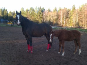 På eftermiddagen var jag ute på Ljusterö och red Bamora igen. Hon var mycket lugnare än senast och rörde sig i princip hela tiden avslappnat. Det var bara fjärde eller femte gången hon blev riden i år, hon har ju en fölis både bredvid sig och i magen. Bilderna på henne nedan är fotade av matte Maria Håkansson.