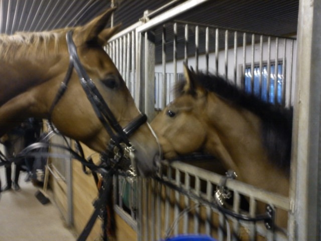 Ebbas föl Sansiro är bara för mycket ibland… Han är supersöt, men så sjukt kaxig trots sin ålder! Han fick hälsa på DC igår när vi var på väg ut ur stallet för att rida. De känner inte varandra överhuvudtaget eftersom de står i olika stallgångar, och ändå sticker Sansiro fram mulen och hälsar utan att ens föl-tugga eller backa av lite.