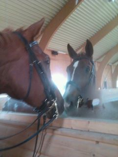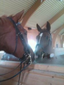 DC beundrar sig själv i spegeln efter dagens ridpass… ett pass som han gjorde riktigt, riktigt bra! Vi joggade lugnt både i trav och galopp, och skippade sadeln för lite omväxlings skull. DC är jättebekväm att sitta barbacka på, han rör sig så smidigt. Jag red mycket raka linjer, kvartslinjer och diagonaler, för att träna på att behålla exakt samma takt oavsett var på ridbanan vi befinner oss. Eftersom nästan alla program innehåller ökningar på diagonalen är det så lätt hänt att både takt och tempo ökar lite där, men idag var DC riktigt avspänd oavsett vilka vägar vi red. Väldigt elastisk och lättreglerad i formen var han också, jag kunde länga, korta, sänka och höja honom i princip hur som helst. Det är så kul när det bara funkar!!