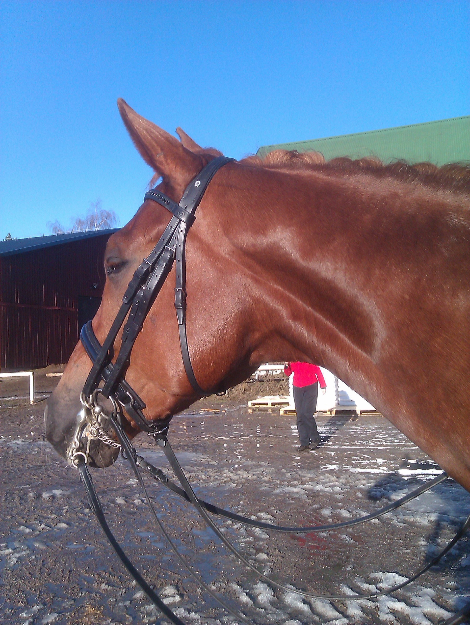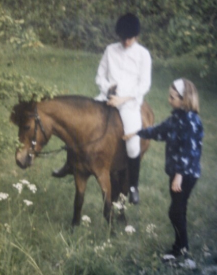 När jag var 9 år hade de vuxit ur Ponti och det blev jag som fick ta över! Att få ha sin ridlärares ponny på foder och dessutom få stå i hennes stall var ju en fantastisk chans att lära sig hur mycket som helst. Stallet var ett väldigt olyxigt men mysigt litet stall, jag tror att det byggdes på 1700-talet… På vintern fick vi skotta oss fram till stallet och ibland hade hästarnas vattenhinkar frusit så vi fick koka vatten i mikron för att tina isen. Jag lärde mig verkligen massor när vi stod där, dels när det gäller själva ridningen men framförallt kring hästhantering, foder, hagar osv.