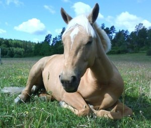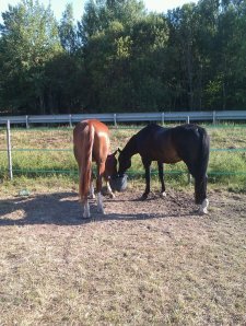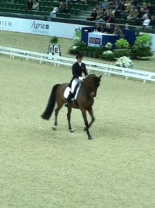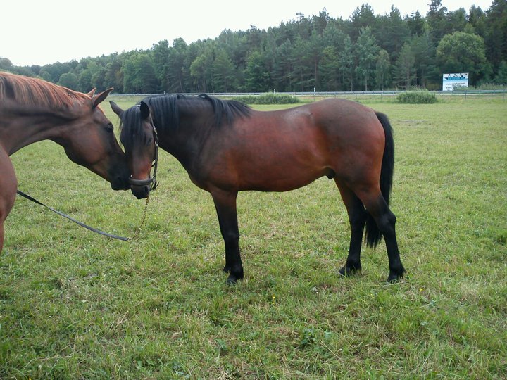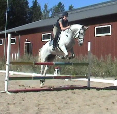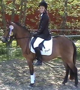Lite kul är det att Linda Öhrn-Lernström, som rider Scheherazade och tränar för mig, en dag hade sett något om Ponti på min websida. Så hon kom och berättade att det var hon som ridit in Ponti som flyttade från Gotland till Bogesund för många år sedan. Jag har ju även tidigare hört många historier om hur vild Ponti var… Linda har berättat om hur Ponti inte gick att fånga i hagen, slet sig när man ledde henne och var rädd inne i spiltan. Hur som helst lyckades Linda sitta upp på henne ute på en åker en dag, och efter det rullade det på. De vann en LC:1 efter några månader ihop. När Linda blev för stor för henne fick hon prova att vara ridskoleponny, men det fungerade inte alls. Så småningom tog min ridlärare Silvana över Ponti, och båda hennes döttrar red och tävlade henne.