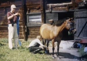 Utanför stallet på Söderby. Mormor och morfar var trogna supporters redan då!