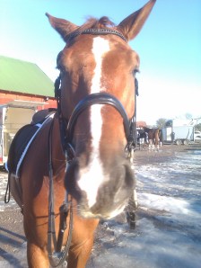 Den här bilden på DC tog jag efter vår ritt igår, och den får symbolisera hur jag känner mig idag – väldigt väldigt trött! Jag blev helt slut av gårdagen, trots att vi bara red en klass. Jag var i och för sig uppe rätt tidigt och höll en träning för Linnea och Dixie på Vallatorp på morgonen, och när vi kom tillbaka till stallet på kvällen hade jag De Chenta kvar att rida, så lite ursäktad är jag väl. Det ska bli intressant att se vilket humör DC är på idag, han kanske är lika trött han också? Vi ska bara skritta ut i skogen en sväng, jag skulle tro att det räcker bra för honom. Själv ska jag rida Chenta också. Annars ser dagen rätt tom ut, skönt med sportlov :)