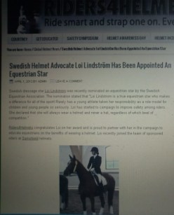 Swedish Helmet Advocate Loi Lindström Has Been Appointed An Equestrian Star. riders4helmets congratulates Loi on her award and is proud to partner with her.