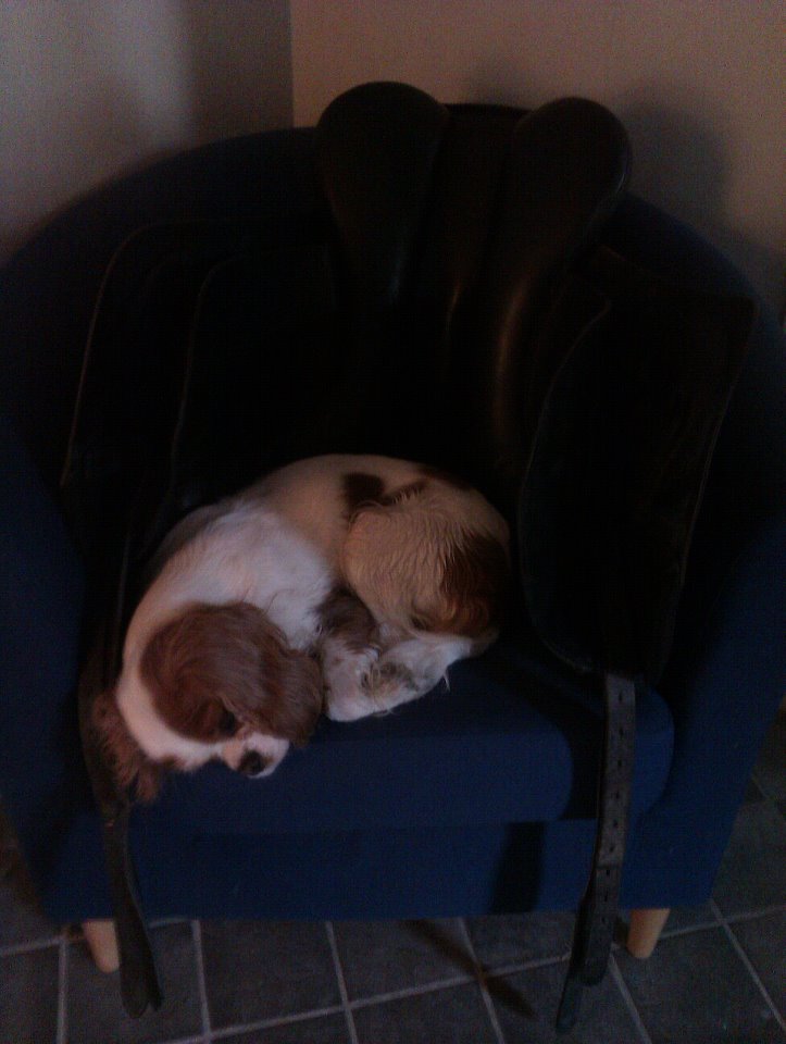 Min sadel har också en arbetsam dag, på besök hos Mia Sunnman, vår sadelmakare, som ska lägga i lite stoppning i bossorna. Malin kände i torsdags att DC var lite mer spänd i ryggen än senast och konstaterade att sadeln, som ligger perfekt i övrigt, guppar lite gungbrädeaktigt på honom. Han har helt enkelt breddat sig över ryggen – inget jag är ledsen över!