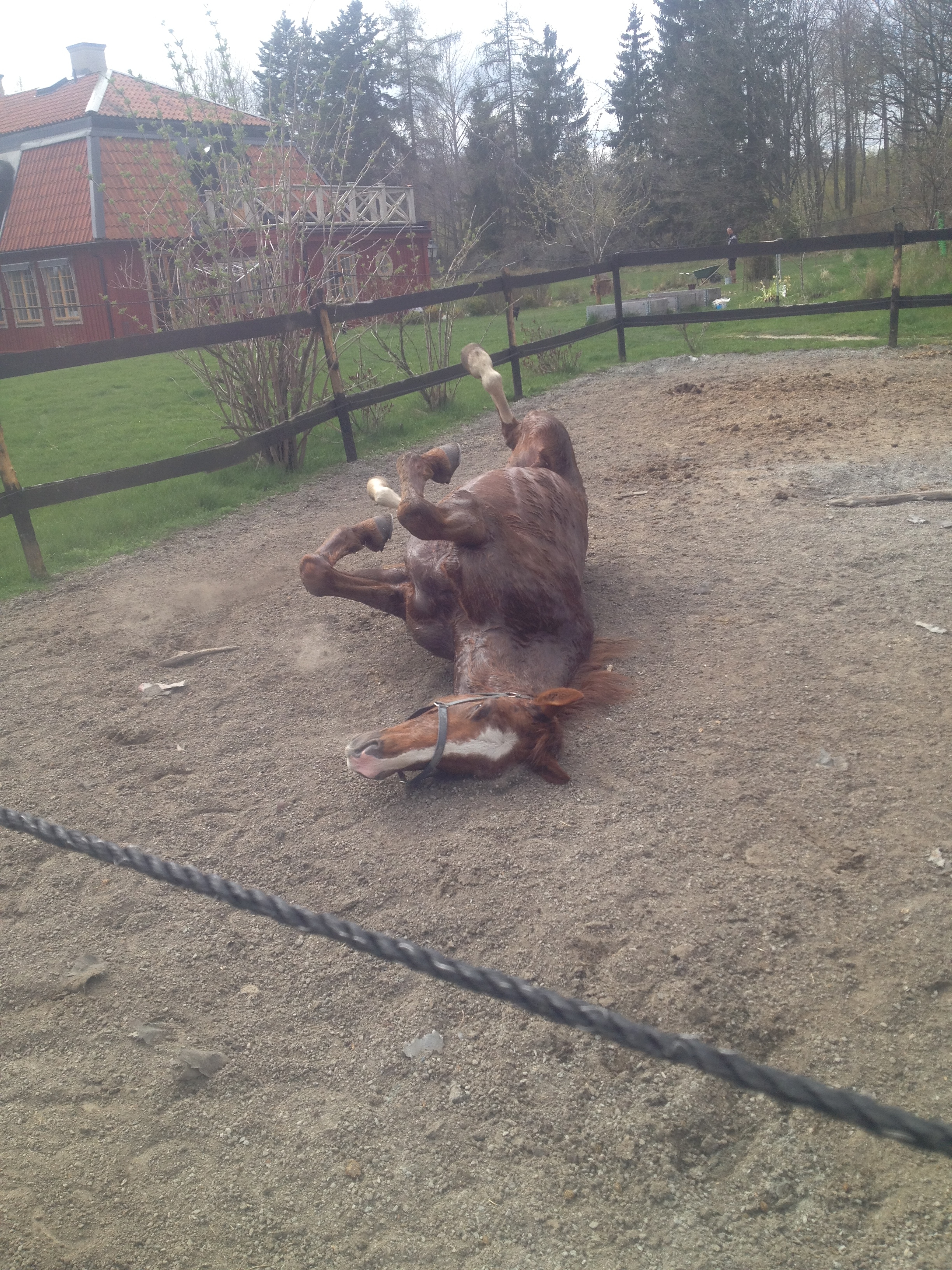 Vi red där igår och jobbade mycket med galoppen, både i backar och med piruetter. På ängen mötte vi DC´s boxgranne som är travare. Han ska starta på torsdag och var ute på snabbjobb, monté i trav. DC gissade att han hade väldigt bråttom och tänkte dra efter honom fortare än kvickt, men lyssnade bra när jag talade om att vi två hade andra saker att sköta tillsammans :)