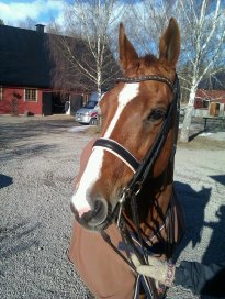 Jag halkade efter lite med Strömsholmstvätten pga att jag också var med på ett hörn. Eftersom det var så få starter att klassen riskerade att inte bli av, så åkte jag över till Herfsta som ett skott och hämtade Don Cameron och startade LA:3. Min söta häst blev lite förvånad när han plötsligt fick knoppar fast han redan gått ett pass. Det är bra Meeting-träning :) Hur som helst var han superduktig, särskilt med tanke på att vi inte tävlat på träns sedan i november. 70% är ju inte att förakta, inte heller en 2:a-plats (fast det var bara en placerad så vi fick ingen rosett idag).