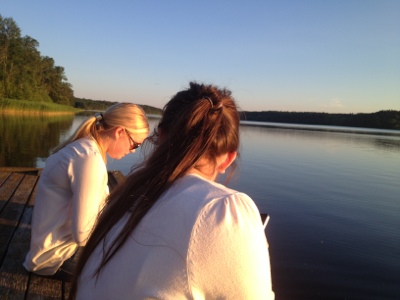 Du ska inte tro det blir sommar… Så jag, Hannah och Mathilda tog helt enkelt saken i egna händer, sitter just nu och äter middag i kvällssolen nere på bryggan. Utsikten? Helt super, vi ser rakt över till DC’s stall på Herfsta :)