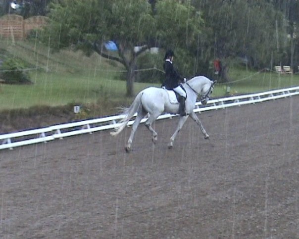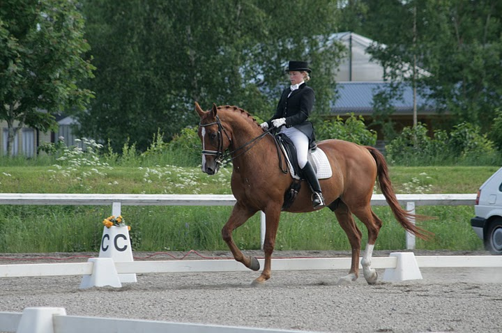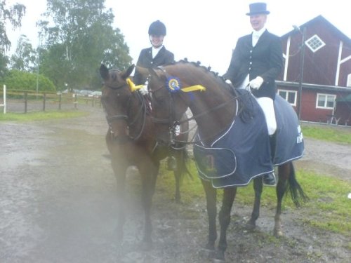Jag var där för tre år sedan med Grandessa och för att skryta lite så var vi placerade på alla våra tre starter; vann LA:6 (motsvarande MsvC:1), 6:a i MsvB:3 och 3:a i MsvB:4. Men satan vad det regnade och vad vi frös! Man red fram på utebanan som på söndagen mest liknade en bassäng. Schabraken var inte bara dyngsura, det var t o m sand på undersidan, stackars Dessi.