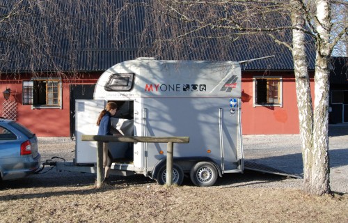 Nu har vår hästtransport varit på besiktning. Det vi oroade oss för mest var att elen ibland inte funkar 100% tillsammans med vår Skôda. Med min bil fungerar den däremot perfekt, så vi funderade på att ta den istället, men chansade ändå på Skôdan eftersom den drar mycket bättre hela vägen till Sthlm.