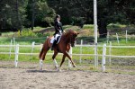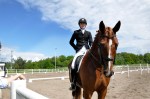 Idag har fina lilla Dan Brown (170 cm, född 2008 e. Dancier – Hohenstein) varit och tävlat med Jeanna. Det var hans premiär på banan och han slapp åka så långt – bara till Håbo.