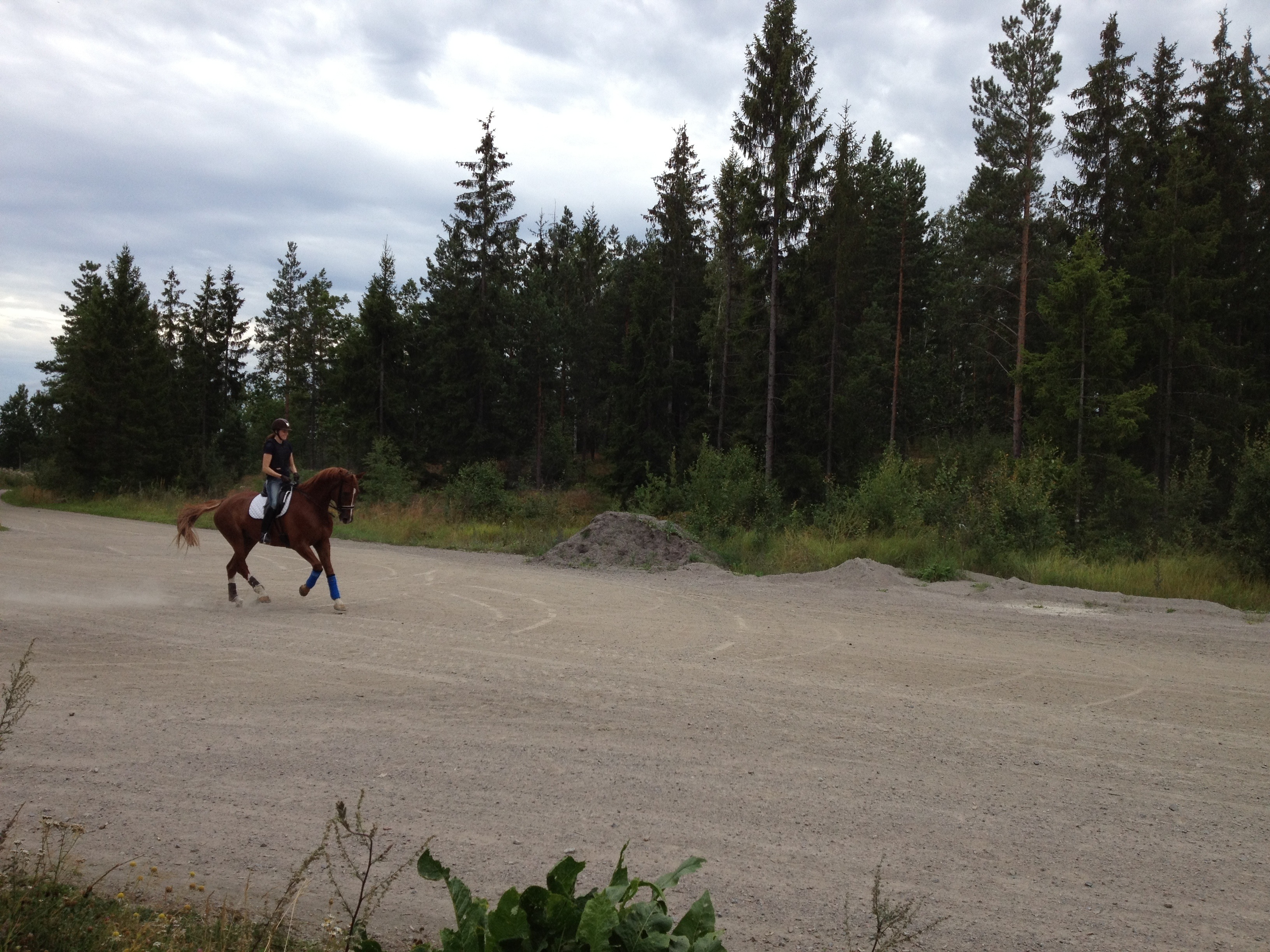 Det här är en helt fantastisk träningsmiljö för oss av flera olika anledningar. Underlaget är fast men inte stenhårt och vi har både breda raksträckor som kan användas som vilken ridbana som helst och så perfekt trav/galoppbana för konditionsträning. Alltihopa mitt i skogen med hästar i hagarna och rådjur i buskarna :)