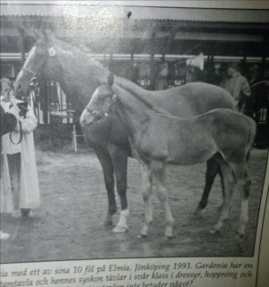 Jag träffade Gardenia i hagen med både döttrar och dotterdöttrar när vi hälsade på hos Mia och Margareta på Stuteri Petter Pan hösten 2010. Hon var otroligt fräsch för sin ålder och en duktig barnvakt.
