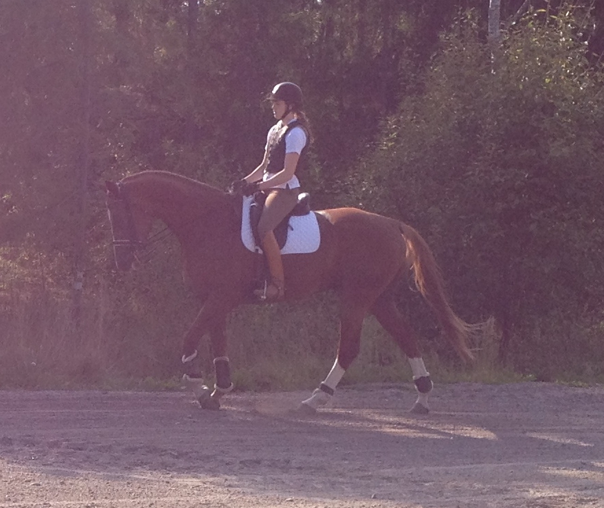 Dagens arbete började med träning för Anna, eller rättare sagt jag red Thestor åt Anna som är sjuk. Han är en fin liten (bara 173 cm) fux, jämngammal med DC och kommer att bli toppen! Lite stadigare och lite mer muskler bara, känner någon igen sig? ;)