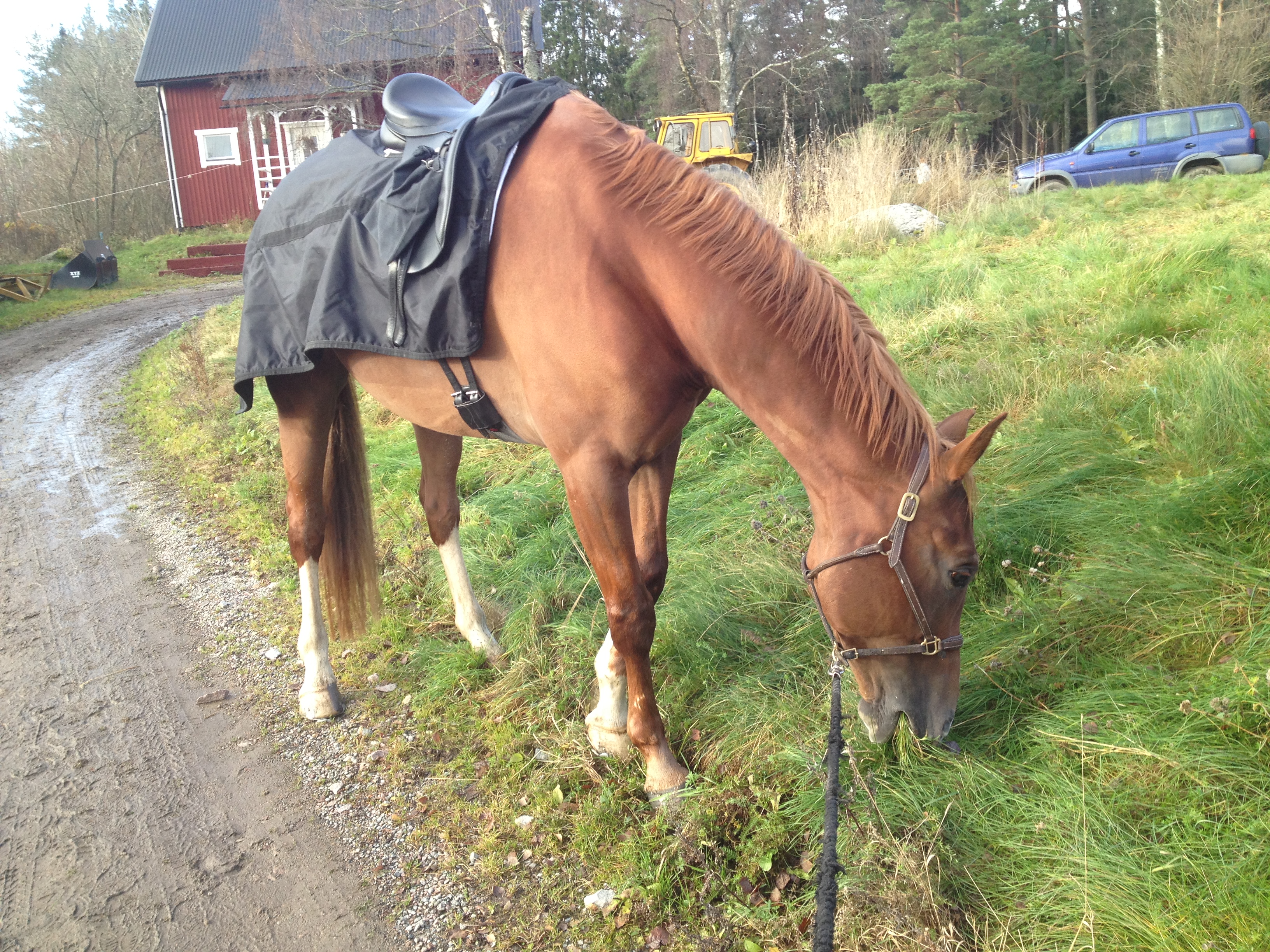 Igår fick han gå sin promenad med sadel på ryggen. Idag åkte kandaret på istället. Jag tänkte att det skulle ge någon sorts liten variation och att han skulle få prova att ha grejerna på sig, så att han inte glömmer hur det är.. ;)