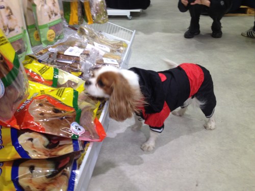 Chichi tycker att det är toppenkul att vara på MyOne. Igår provsmakade hon hundgodis och provade täcken.