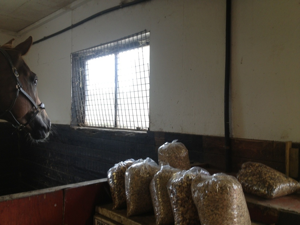 DC blev glatt överraskad när han kom in i sin box och det stod portionsförpackat kraftfoder på bekvämt avstånd! Fick flytta på det fortare än kvickt!