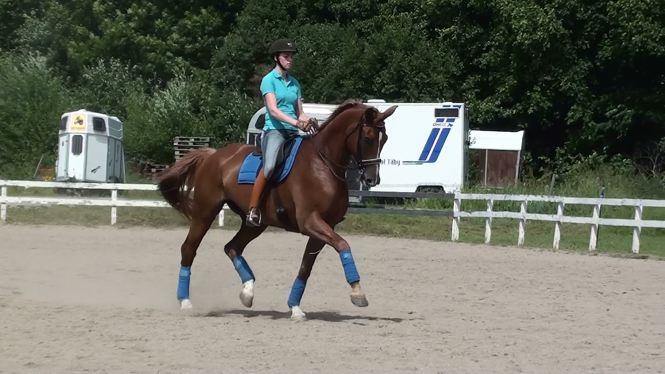 DC gör sitt bästa, tar korrigeringar glatt, söker beröm och är allmänt mysig att ha med att göra. Jag tror faktiskt att han saknat att gå till jobbet. Han skyndar iväg från stallplan direkt när jag suttit upp utan att jag ens behöver be honom om det. Fina häst!