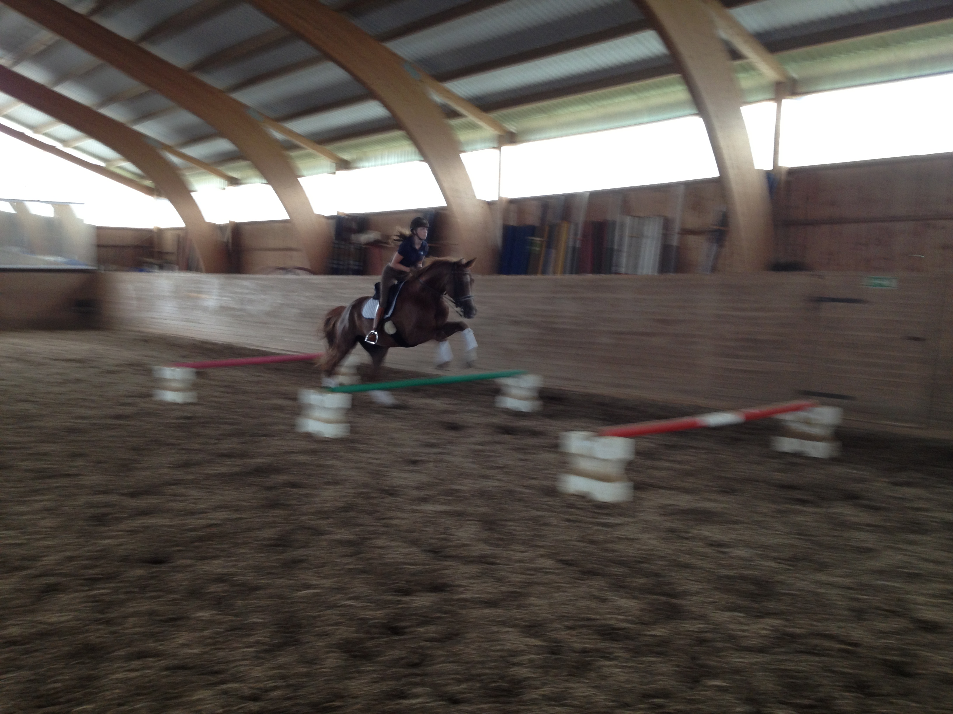 Vi håller på med ett träningsprogram just nu. Det involverar bl a att en del av uppvärmningen sker i backar, men på grund av vädret var jag tvungen att hitta på en ersättning för backarna. Galoppbommar, först på marken, sedan snett upphöjda och till sist höga, blev lösningen. DC fick verkligen ta i med bakbenen, särskilt när bommarna var så långt ifrån varandra så att han behövde sträcka maximalt på sig.