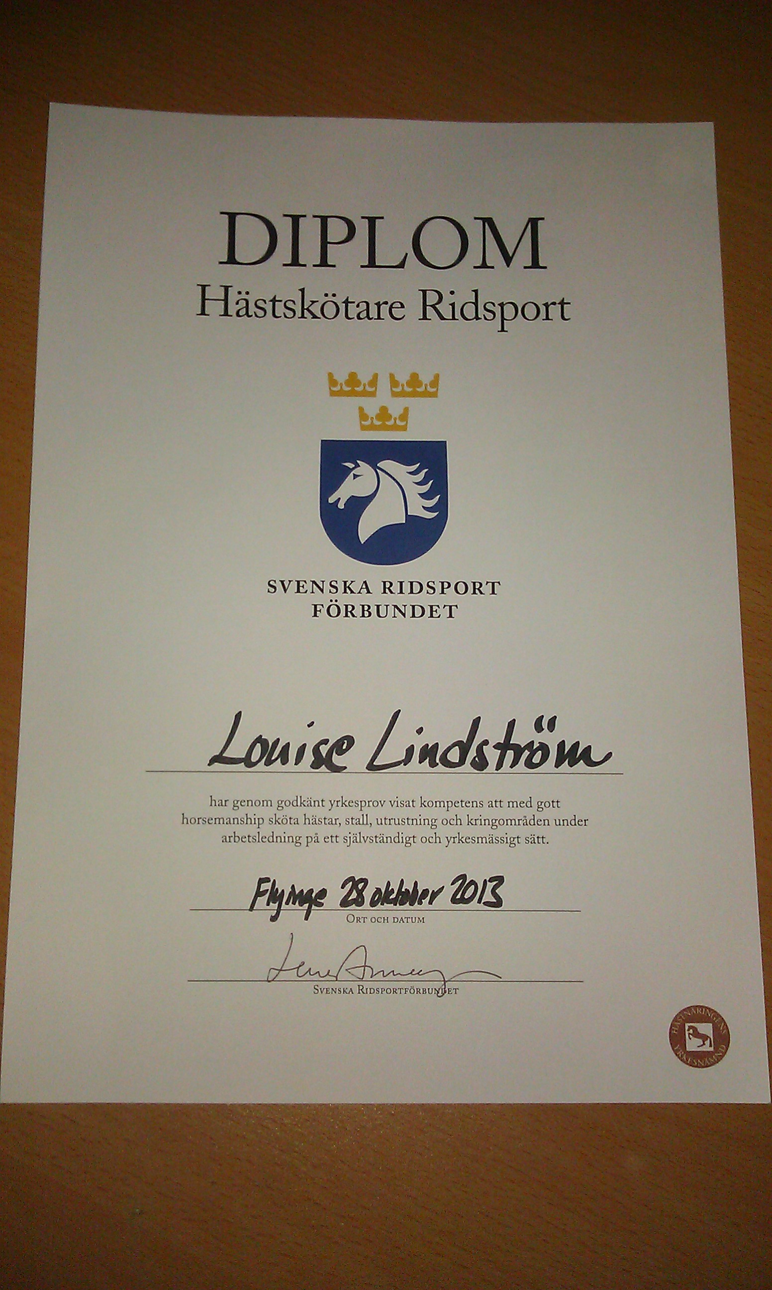 Lord Lexington hoppade jag på lektion för Astrid i morse. Det känns bättre för varje hoppträning tycker jag, det går helt klart åt rätt håll. Sinful skrittade jag ut på, vi tog ett varv runt terrängbanan. Finfint sällskap i form av Erika, Sarah och Matilda gjorde att det var trevligt trots regnet :)