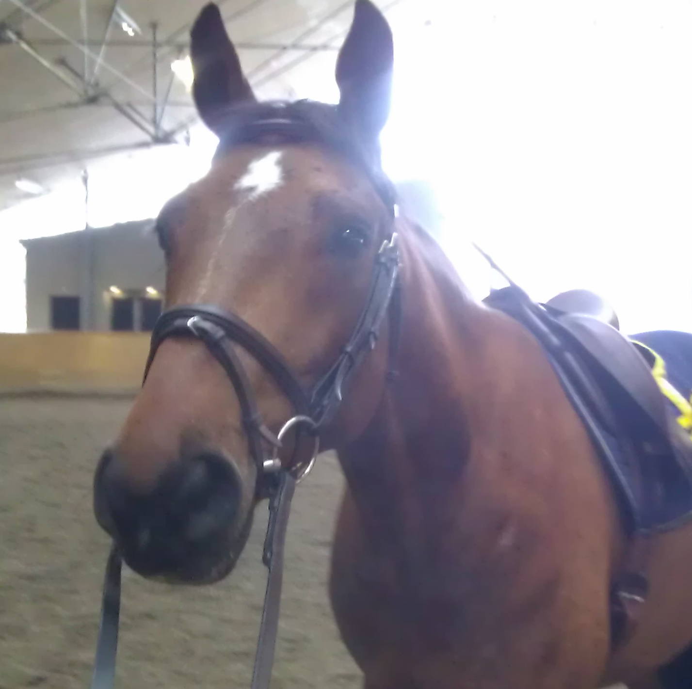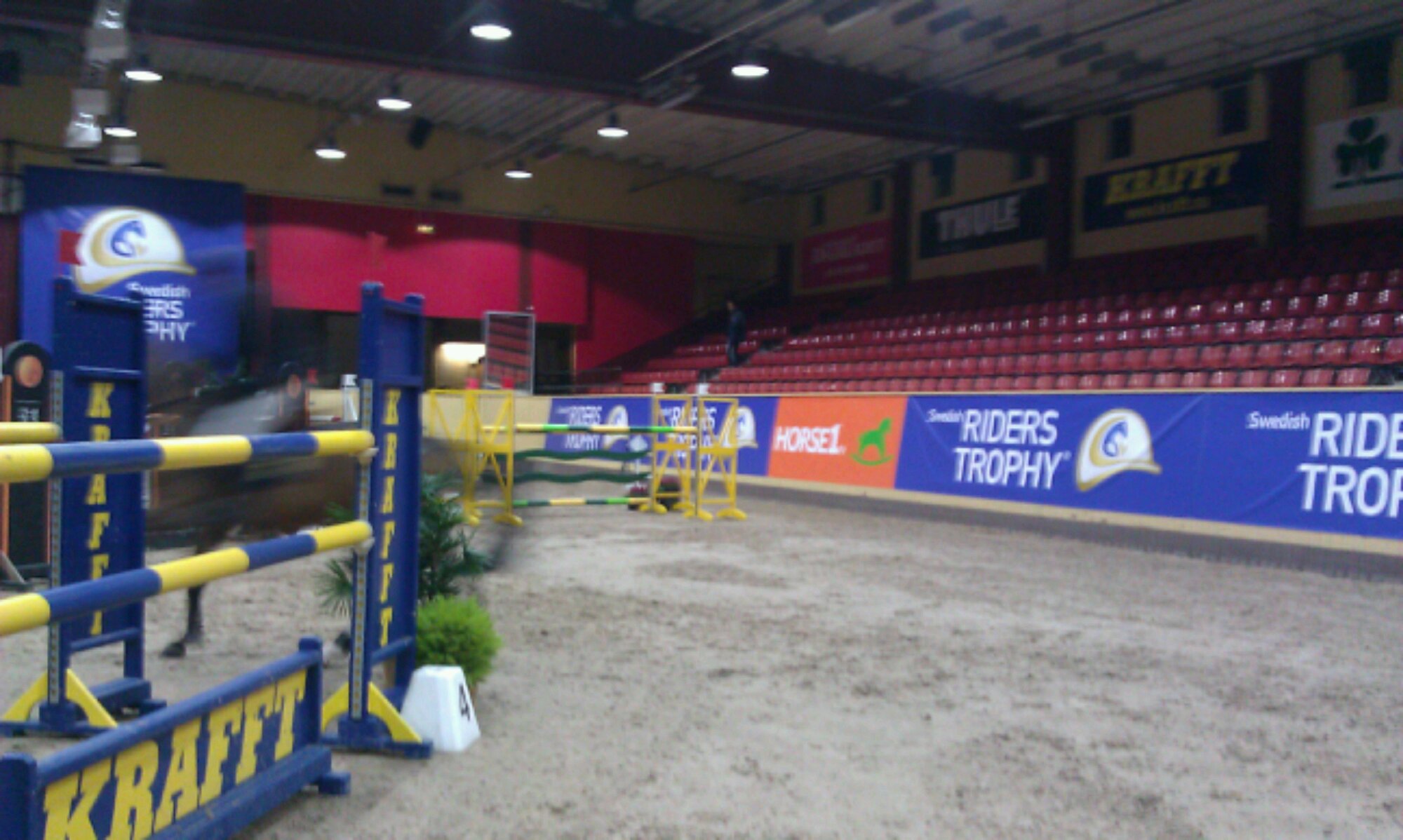 Qruella red jag i Crafoordhallen för första gången – inga konstigheter alls tyckte hon. Vi galopperade på riktigt bra, men plötsligt siktade hon in sig på en av sockerbitarna Anders ställt upp för att dela av banan. Hon måste hört att vi ska rida bommar nästa vecka… Hur som helst lät hon bli att hoppa den, för när hon kom nära skvätte det ju grus på den och det var förstås otroligt läskigt. Men numera vet hon ju att man inte kommer att dö bara för att man blir rädd, så hon andades ut och fortsatte gå som en klocka.