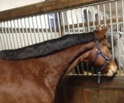 DC är ännu värre, med ca 15 sytrådstunna strån till pannlugg. Han var dessutom troligen enhörning i sitt förra liv och har en knöl mellan öronen, så han ser absolut inte klok ut med flätad pannlugg. Utsläppt lugg, precis ner till bärnsten/guld-pannbandet på kandaret har han på tävling.