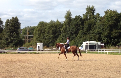 Vi fick oss ju ett gott skratt i alla fall, när jag menade på att man behöver gasa på in i en kombination vars syfte visade sig vara att kännas lite trång… Fråga mig hur många grader det ska vara mellan hästens mun och skänkeln på kandarstången eller vilken diameter på voltstorlek en hörnpassering motsvarar istället, så blir jag gladare ;)