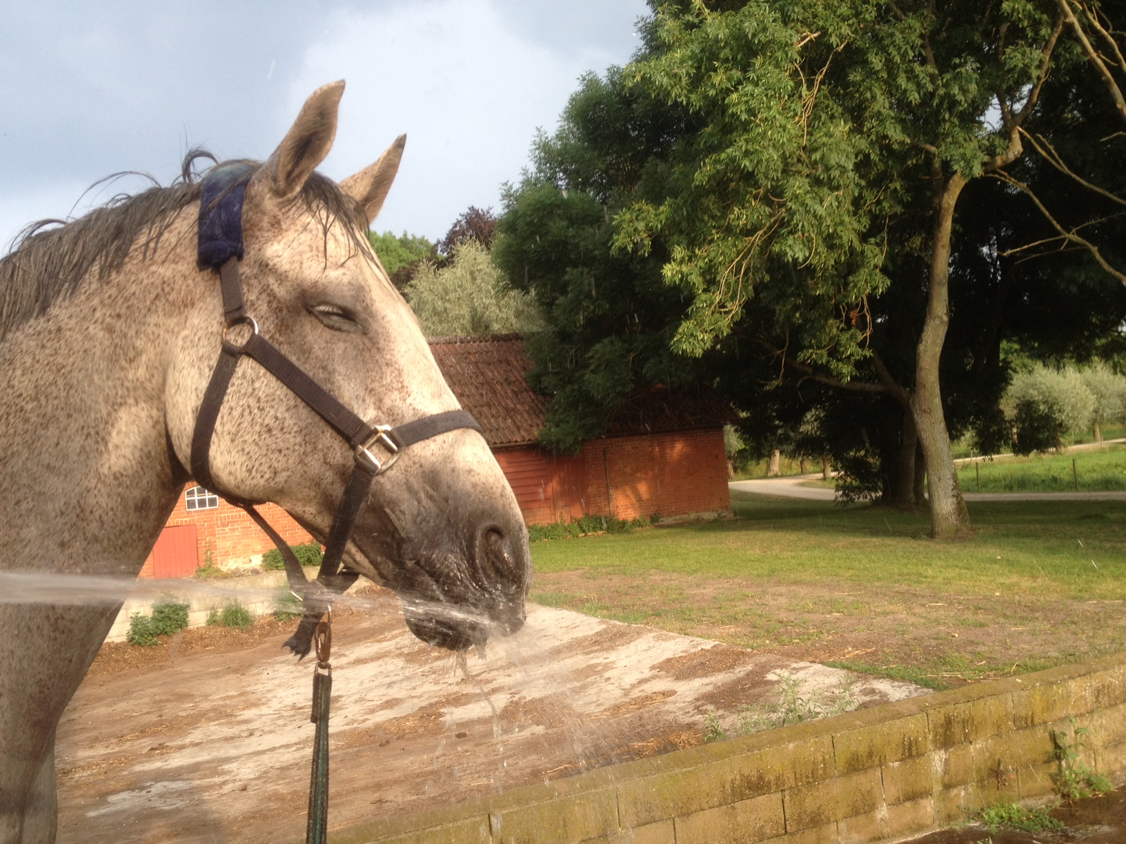 Så jag tänker inte gnälla på vädret. Däremot insåg jag att igår kan ha varit första gången i mitt liv som jag nästan tyckte att det var roligare att fylla vatten i tunnorna i hagarna än att rida i förmiddagssolen på utebanan. Men bara nästan ;)