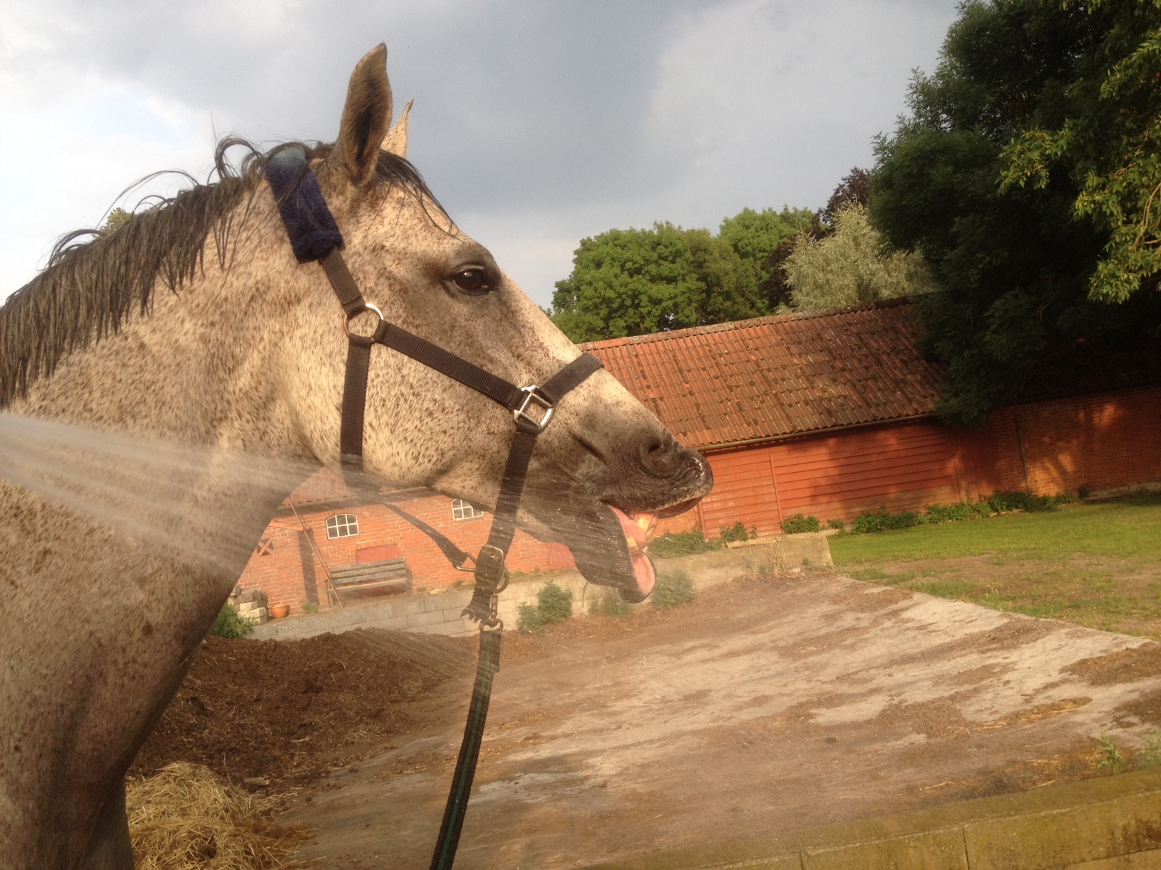 Det märks på hästarna också att det är nästintill tropisk värme, så jag kör inte alltför hårt med dem. Korta pass och mycket skrittarbete! Särskilt unghästarna som går ute på nätterna har haft en lugn start på veckan. Jag brukar rida dem först på dagen och sedan får de stå (läs ligga) inne i lediga boxar när det är som varmast.