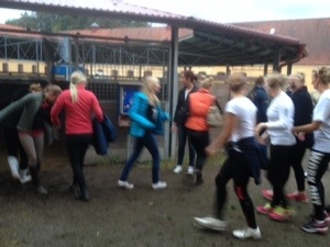 Vi har även haft två dressyrpass för Olof – Baresco var duktig men Berganza var bäst! Första dressyrinriktade ridläran avslutades dagen med, då med Mette Henriksen som ju är vår sitsguru här. Vi fick en teoretisk genomgång av sitsens byggstenar och sedan ett par praktiska övningar ute i ridhuset (eller rättare sagt halvt hängandes mot ridhusväggen). Så intressant att hitta sina svaga punkter. Jag behöver bli starkare i sidorna av bålen, sneda situps på ingång mao!