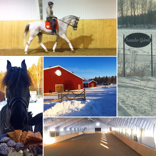 I helgen gick min dressyrkurs av stapeln på Sanda Equestrian. Det blev två mysiga dagar på en superfin anläggning med mycket bra träningsmöjligheter. Anna som har arrangerat det hela hade verkligen tänkt på allt, från ridschema och uppstallning till fika och mat. Dag två var det bland annat några ekipage som tränade program inför vårterminens tävlingar – det börjar ju faktiskt dra ihop sig!