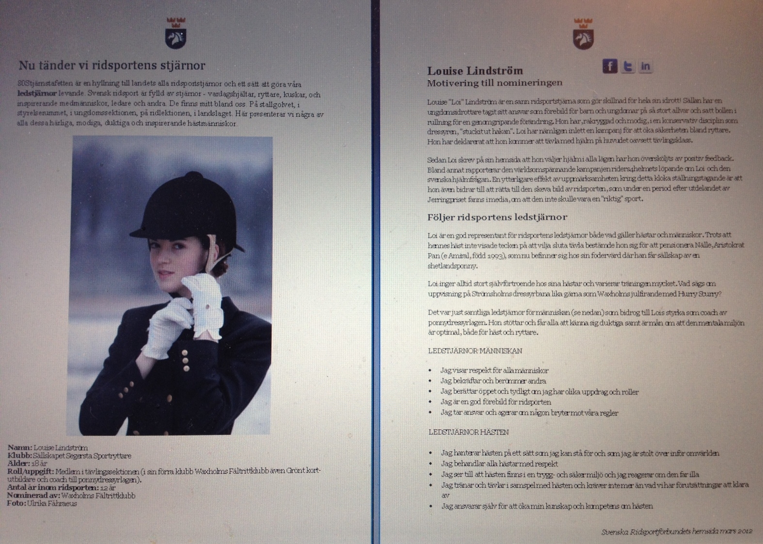Svenska Ridsportförbundet 2012 Ridsportens stjärnor