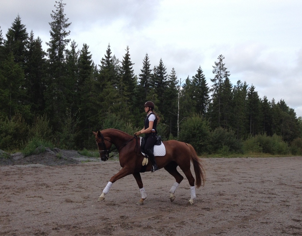 Hur som helst behövde jag inte ”prova” för matte kom med en hoppsadel som passade på en gång, med blått Flyingeschabrak under och allt. Allt klär ju en skönhet, men ett sånt mörkblått schabrak med guldtext på är verkligen pricken över i på en snygg fux!