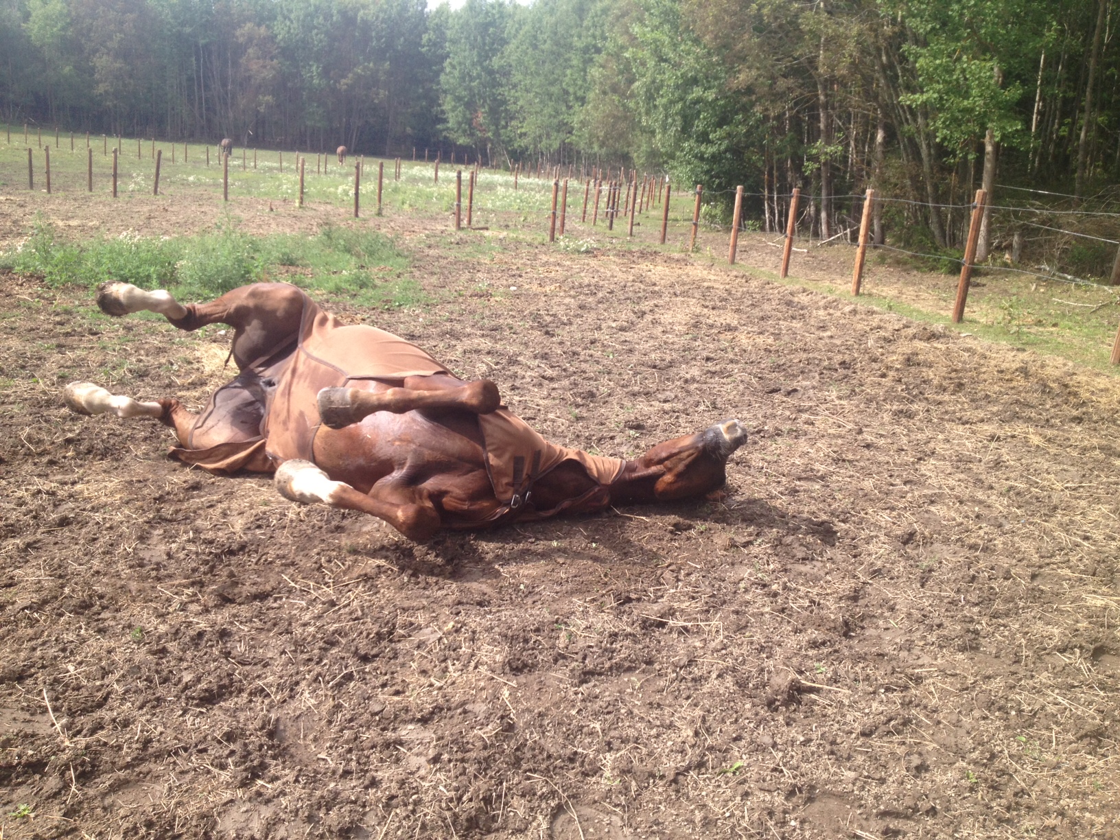 Idag fick jag äntligen en hagkompis – Linné, som är valack och fux som jag, men bara 6 år. Vi kommer nog trivas bra ihop. Han tyckte att det var kul att dra i mina kinder, lite konstigt faktiskt. Men så vet ju inte han hur skitig jag var i nyllet i morse heller! Haha!